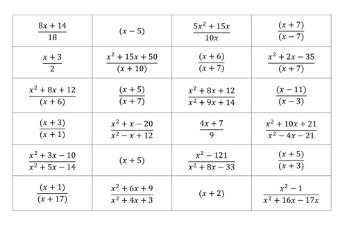 Algebraic Fractions Factoring And Simplifying Teaching Resources
