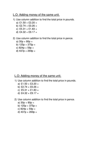 Adding And Subtracting Money Values Teaching Resources