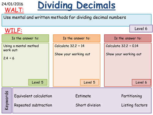 Ks3 Multiplying And Dividing Decimals Mental Written And Calculator Methods Level 6 Teaching Resources