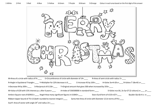 Christmas Maths Colouring Sheets Christmas Math Fun Math Christmas Colour By Numbers Gcse Christmas Christmas Math Activities Christmas Math Math Coloring